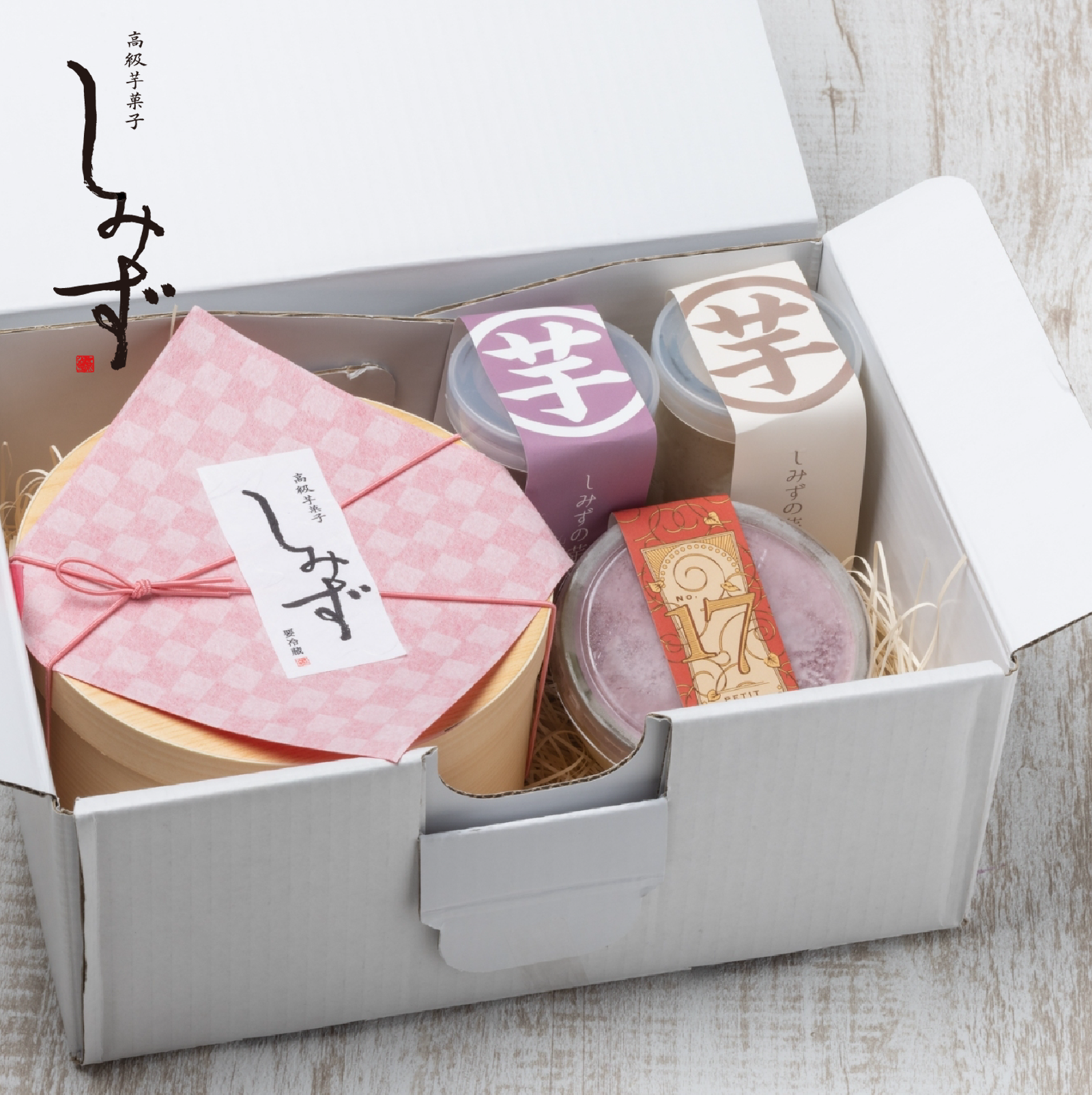 | 商品内容/内容量 | しみずバラエティーセット Eセット / 和スイートポテト 4 個食べ比べ(紅はるか、シルク スイート、紫芋、さつま金時)・安納芋プリン 1 個・紫芋プリン 1 個・チーズテリーヌ プ チ1個 |